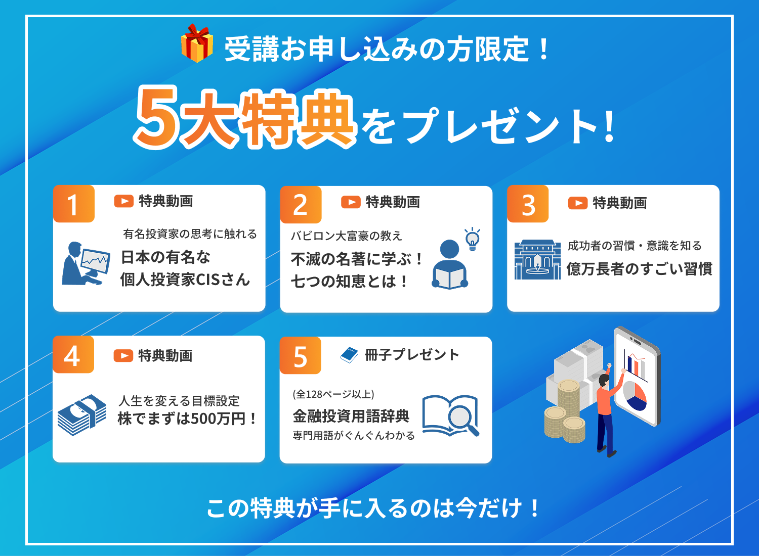 ゆっくりと自分のペースで「1年で500万円」「2年で3,000万円」を狙う手法が学べます。